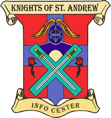 There is no “official” headquarters or central authority of the Knights of St. Andrew… no uniform… no required procedures or prescribed ritual. The attire and regalia varies from one Chapter to another. Most Chapters have adopted the insignia developed by the Guthrie Chapter for their recognition lapel pin and badge.